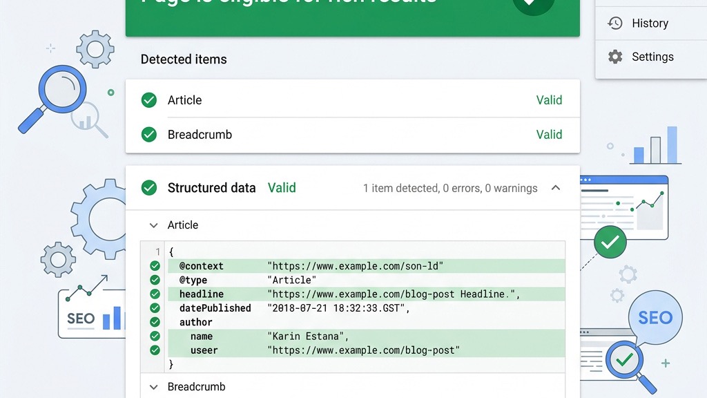 The Google Rich Results Test is a quick way to see whether our JSON‑LD will produce a rich result. We can paste a URL or a code snippet, and the tool will highlight any errors or warnings. It also shows a preview of how the result might look in the SERP, giving us confidence before we push changes live. Access the tester at Google Rich Results Test.