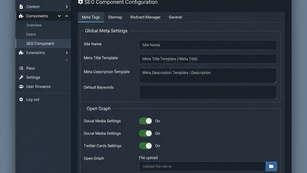 For a blog or a small corporate site with fewer than 200 pages, a lightweight component like Route66 may be sufficient. It handles meta tags and a basic sitemap without overwhelming the admin panel. Large portals with thousands of articles, multiple language versions, and an active forum benefit from the richer feature set of 4SEO or RSSeo! Suite, which can manage bulk redirects and provide detailed keyword‑density reports.